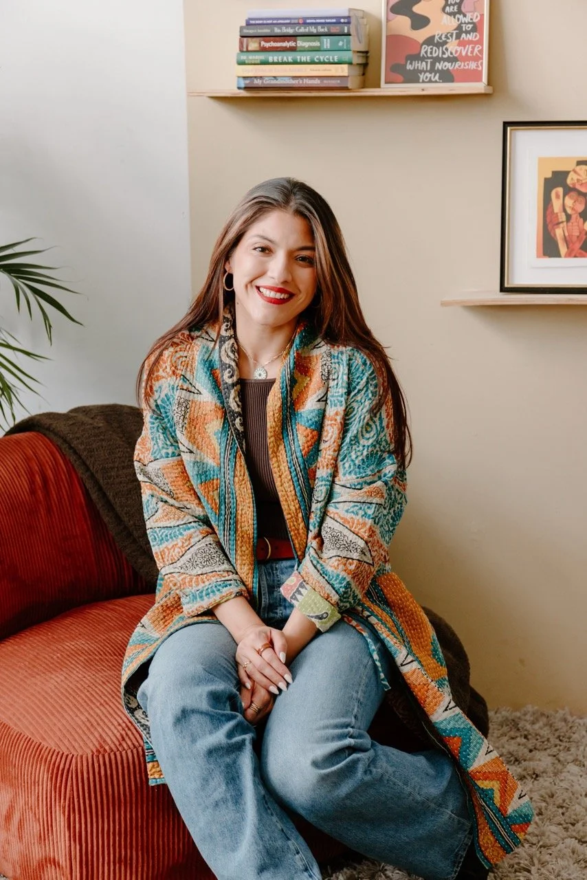 I am an Ecuadorian-Puerto Rican-American woman, a first-generation college student, and someone with working-class roots. I share that not because therapy is about me, but because my experiences have taught me that for some clients, it matters to sit across from someone who understands what it feels like to navigate multiple worlds at once, to carry family expectations, or to feel unseen in spaces not built for you.